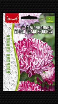 Это великолепный сорт с пышными соцветиями, напоминающими пушистые помпоны. Лепестки окрашены в насыщенный карминно-красный цвет с белыми полосками, что создаёт эффект седины. Кусты компактные, высотой до 60 см, с прочными стеблями и густой листвой. Полусферические соцветия достигают диаметра 8-10 см и состоят из широких язычковых цветков, которые образуют пышную шапку, прикрывающую трубчатые цветки. Цветение начинается в августе и продолжается до октября. Эта астра станет ярким акцентом в вашем саду и прекрасно подойдёт для создания букетов.