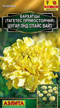 Низкорослые африканские бархатцы иностранной селекции с крупными и пышными цветками редкого кремового оттенка и приятного пряного аромата. Особенно ценными свойствами сорта являются: выровненность растений, однородность и обильность цветения. Соцветия на кусте надолго сохраняют свежесть, оттенок и красивую гвоздиковидную форму. Непрерывное цветение продолжается до заморозков. Оптимальная высота 30-40 см, компактность растений позволяют широко использовать их в озеленении садовых участков, зон отдыха и балконов. Высота растений зависит от условий выращивания.
