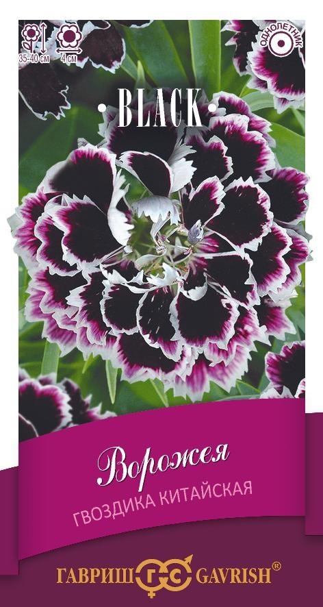 Многолетнее травянистое растение, культивируемое как однолетник. Относится к широко распространенной садовой разновидности гвоздики китайской, называемой гвоздикой Геддевига, которую часто считают отдельным видом. Образует густые, хорошо облиственные кустики, высотой 35-40 см, усыпанные махровые цветками, диаметром 4 см, необыкновенной черной окраски с белой каймой. Цветет с июля до первых заморозков. Неприхотливое, морозостойкое и светолюбивое растение. Предпочитает влажную, слегка известковую почву. Выращивают рассадным способом. Семена высевают в марте — начале апреле в горшки с песчаной почвой. Молодые растения высаживают в открытый грунт в конце апреля — мае. Гвоздика китайская хорошо смотрится группами на газоне, в цветниках, низкорослых бордюрах, вазонах и контейнерах.