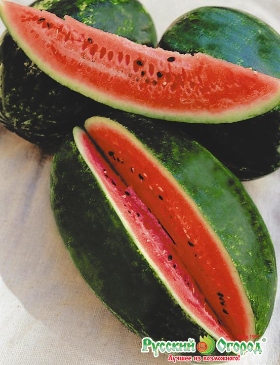 Арбуз Подмосковный Чарльстон F1 - самый ранний среди гибридов! У него красивые овальные плоды, окраска - темно-зеленая. Кора гладкая и блестящая, а мякоть – классическая ярко-красная, плотная и, конечно же, очень сладкая! Прекрасный вариант для выращивания летних десертов на дачном участке! От посева до начала уборки урожая проходит 80 дней, что действительно немного. Плоды крупные, достигают массы 8–10 кг. Вкусовые качества отличные, проверено не одним сезоном!