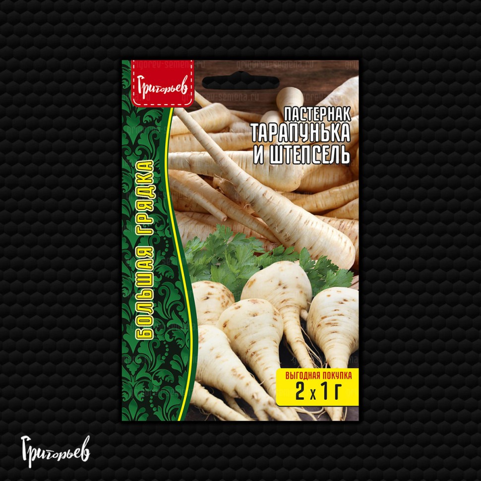 Самый холодостойкий корнеплод, способный выдерживать заморозки до -6 °C. Овощная культура семейства сельдереевых с толстым корнеплодом очень нежного и необычного сладко-пряного вкуса. Корень пастернака богат кремнием, калием, фосфором, серой, магнием, натрием, железом и кальцием и рекомендуется для использования в качестве продукта для тех, кто восстанавливается после перенесённых заболеваний. Можно использовать в кулинарии в супах или салатах. В сыром виде идеально сочетается с морковью. Розетка листьев крупная, полураскидистая. Листья зелёные, с остро надрезанными долями. Черешки светло-зелёные с антоцианом (пигмент, придающий красный или фиолетовый оттенок). Корнеплоды крупные, в технической спелости достигают 100-200 г, легко выдёргиваются из почвы, отлично хранятся. Урожайность составляет 2,5-3,5 кг/м². В набор входят два замечательных сорта, которые отличаются друг от друга не только сроками созревания и формой корнеплода, но и оттенками вкуса. ТАРАПУНЬКА: Период от всходов до технической спелости составляет 60-110 дней, в зависимости от региона выращивания. Серовато-белый корнеплод имеет округло-сплюснутую у основания форму. ШТЕПСЕЛЬ: Период от всходов до технической спелости составляет 100-110 дней, в зависимости от региона выращивания. Корнеплод вытянутый, конусовидный белого цвета. Имеет ореховый привкус.