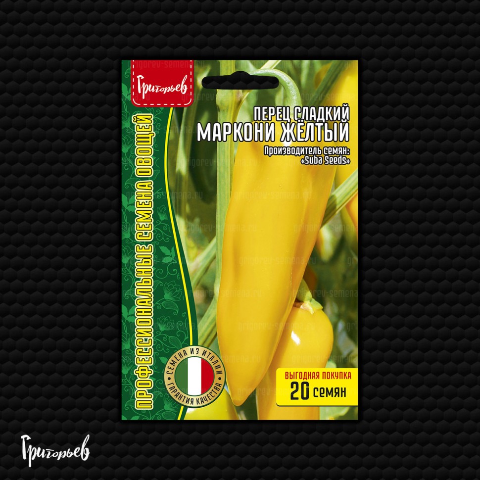 Этот сладкий итальянец – воплощение сочности, вкуса и яркости на каждый день. Куст мощный, высокорослый (примерно 50-60 см), формирует крупные жёлто-оранжевые плоды длинные (20-30 см) и крупные (150-300 г) с плотной стенкой толщиной 3-4 мм. Нежные и сочные перцы созревают в среднем через 100-115 дней, отлично подходят для жарки на гриле, фаршировки, запекания и употребления свежими, а их насыщенный сладкий вкус делает этот сорт универсальным в кухне.