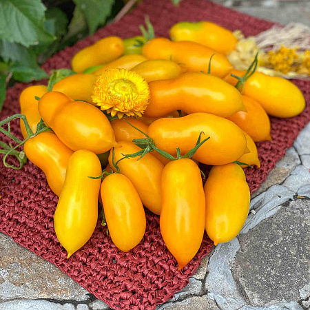 Суперурожайный сорт, имеет в кисти до 30 штук лимонно-желтых ламповидных плодов. Они упругие, мясистые, мякоть зернистая, нежная. Высокие вкусовые качества с выраженным характерным ароматом. Великолепно ведут себя на гриле и при запекании в духовке. Сорт среднеранний, индетерминантный, устойчивый к заболеваниям. Формируем в 2–3 стебля.