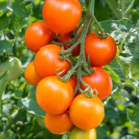 Супервкусный кистевой помидор яркого мандаринового цвета. Дегустационная оценка – 9 баллов из 10 возможных! Формирует длинные красивые кисти по 8–12 плодов. Ни одного треснутого помидора! Стабильный урожай и хорошая завязываемость плодов при любых условиях. Высокая устойчивость к болезням. Растение здоровое с хорошо развитой корневой системой. Гибрид индетерминантный. Формируем в 1–2 стебля.