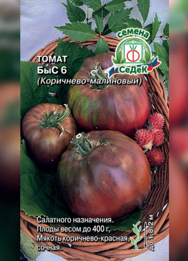 Среднеранний (105-115 дней) сорт салатного назначения для парников и теплиц. Растение индетерминантное, высотой до 1,8-2 м, среднеоблиственное. Наилучшие результаты по урожайности можно получить при формировании в два стебля. В кисти до 5 плодов. Плоды сердцевидные, слегка ребристые, коричнево-малиновые с зеленым пятном у плодоножки, массой 250-400 г. Мякоть коричнево-красная, сочная. Вкус насыщенный, сладкий, с приятными фруктовыми нотками. Ценность сорта: неприхотливость выращивания, оригинальность плодов, отличные вкусовые качества. Рекомендуется для употребления в свежем виде, переработки на соки и соусы