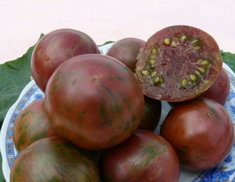 Индетерминантный, высокорослый, среднеранний сорт для открытого и закрытого грунта. Куст рекомендуют формировать в 2-3 стебля. Плоды округлые, ровные, слаборебристые, сочные и сладкие, средней массой 70-80 г. Цвет плодов очень декоративный: на коричнево-бордовом фоне темные полоски.
