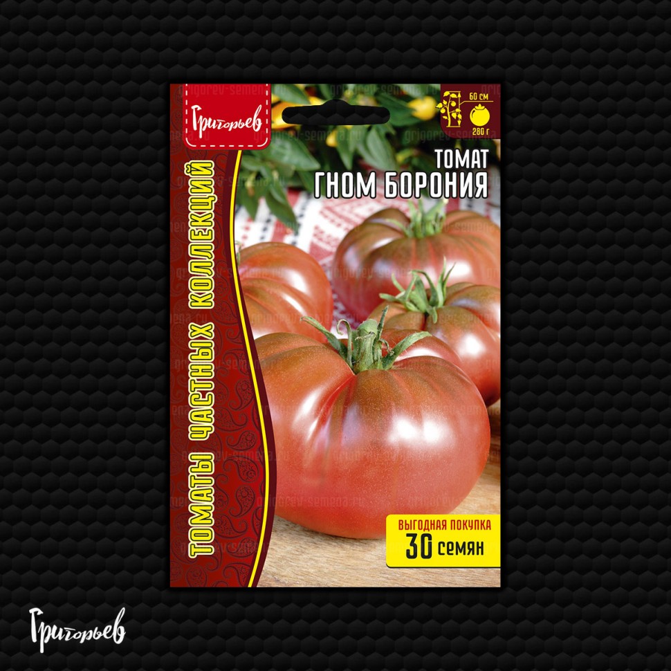 Этот сорт создан в 2014 году в рамках проекта «Dwarf Tomato Project» путём скрещивания сортов «Новый большой гном» и «Поль Робсон». Растение детерминантное, компактное, обычно достигает 60 см в высоту. У него крепкий прямостоячий куст и морщинистые широкие листья. Сорт не требует пасынкования и сложного формирования. Плоды имеют плоскоокруглую форму с лёгкой ребристостью. Их масса составляет 250-300 г. Окраска плодов пурпурно-розовая, с зелёными плечиками. Мякоть маслянистая и сочная. Вкус сладкий с лёгкой кислинкой, а аромат насыщенный, с дымными нотками. Кожица тонкая и гладкая. Сорт среднеспелый, созревает за 105-115 дней. Он хорошо завязывает плоды даже в лёгком затенении. Урожайность высокая - до 5-8 кг с куста. Подходит для выращивания в открытом грунте, теплицах и дома. Плоды универсальны: их можно употреблять в свежем виде и использовать для заготовок. При правильном уходе растение устойчиво к основным заболеваниям томатов.