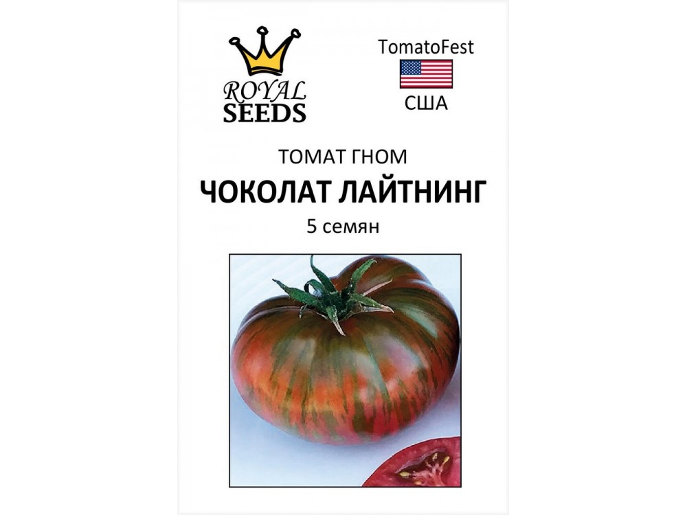Среднепоздний (125 дней от всходов) карликовый индетерминантный сорт томата из проекта «Томаты Гномы» (Open Dwarf Project). Растения до 140 см, с темно-зелеными, морщинистыми, обычными листьями и очень крепким центральным стеблем. Плоды плоскоокруглые, слаборебристые, гладкие, массой 120-230 г, шоколадно-коричневого цвета с зелеными и золотыми полосками, с темно-вишневой мякотью. Вкус полный, насыщенный, очень приятный, хорошо сбалансированный. Сорт салатного назначения.