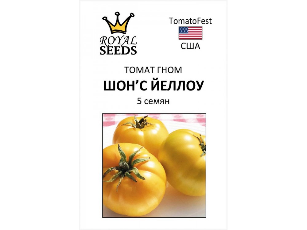 Среднепоздний (125 дней от всходов) карликовый детерминантный сорт томата из проекта «Томаты Гномы» (Open Dwarf Project). Растения до 120 см, с темно-зелеными, морщинистыми, обычными листьями и очень крепким центральным стеблем. Плоды плоскоокруглые, гладкие, массой 90-200 г, ярко-желтого цвета, с бледно-жёлтой сочной мякотью. Вкус освежающий, яркий, восхитительный. Сорт салатного назначения, обладает очень высокой урожайностью.