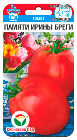 Среднеспелый обильноурожайный сорт селекции АФ «Сибирский сад». Назван в память о талантливом сибирском враче и ученой Ирине Бреге. Ценится за особую крупноплодность и популярный розово-малиновый цвет томатов. Рано вступает в плодоношение (над 6-7 листом), формируя в кистях до 10 плодов внушительного размера. Сорт крепкий, хорошо приспособлен к климатическим условиям Сибири. Рекомендуется для выращивания в защищенном грунте, в более теплых регионах может выращиваться в коловой культуре в открытом грунте.